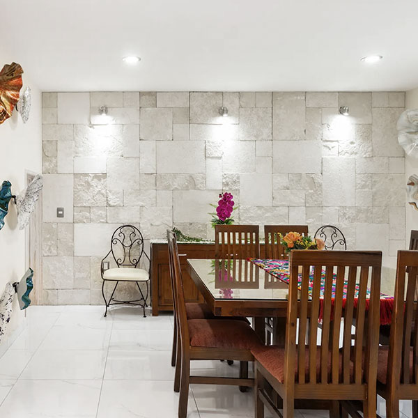 Piedra Galarza blanca en laja es una piedra caliza con acabado rústico en tonalidades en su mayoría blanca, La piedra Galarza por su composición es una piedra fácil de manejar y recomendada para muros de interior y exterior, ya que su tonalidad de blanco ahuesado da un toque elegante La piedra Galarza se ha vuelto una de las piedras lajas naturales preferidas para acabados dando un aspecto natural, rustico, moderno y sobre todo fresco a los espacios dotándolos de armonía y contraste entre los diferentes materiales.